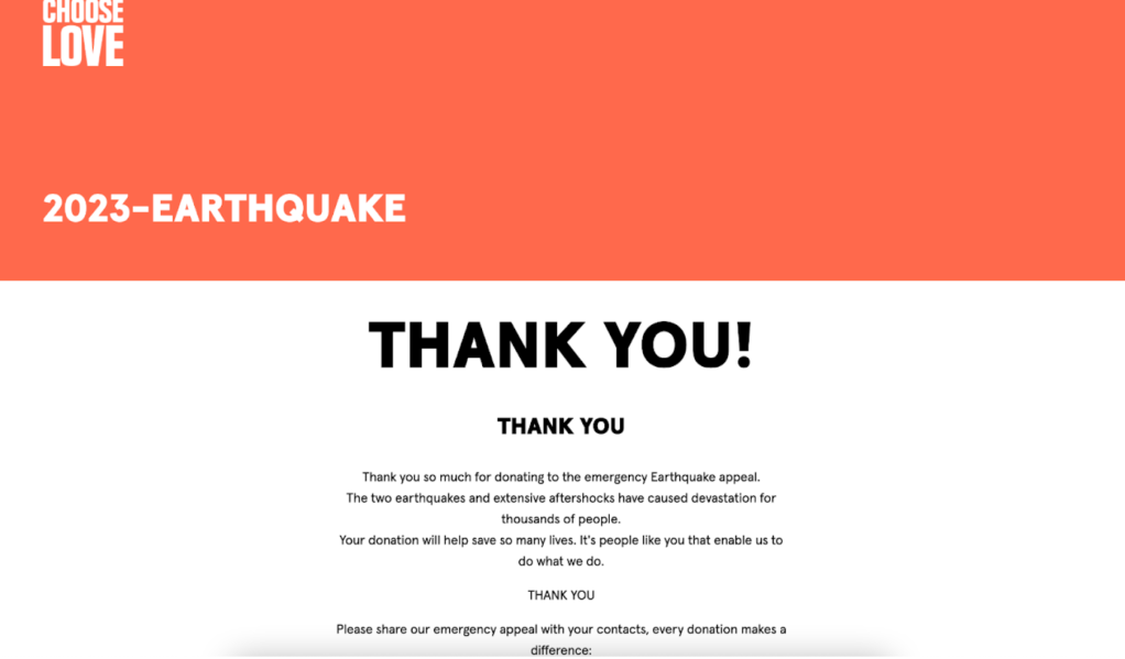 I feel so very moved and grateful that my idea to share peoples’ stories to raise money for the Turkey and Syria earthquake fundraisers reached enough people to do not just one, but two posts! Following the first post, I donated the money raised from the stories sent in and the reads that specific post got to Choose Love’s emergency earthquake fundraiser. It means a lot that people were so on board to send stories in or at least read the post, and I know that the money raised really will make a difference.