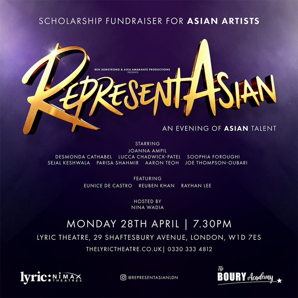 Following six hugely successful sold-out shows at the Phoenix Arts Club in Soho, RepresentAsian is headed to the West End and a much bigger theatre…for one night only, on Monday the 28th of April 2025, RepresentAsian: An Evening of Asian Talent will be held at the Lyric Theatre on Shaftesbury Avenue! With a star-studded cast, this is sure to follow in the previous show’s footsteps and be a special night showcasing Asian talent.