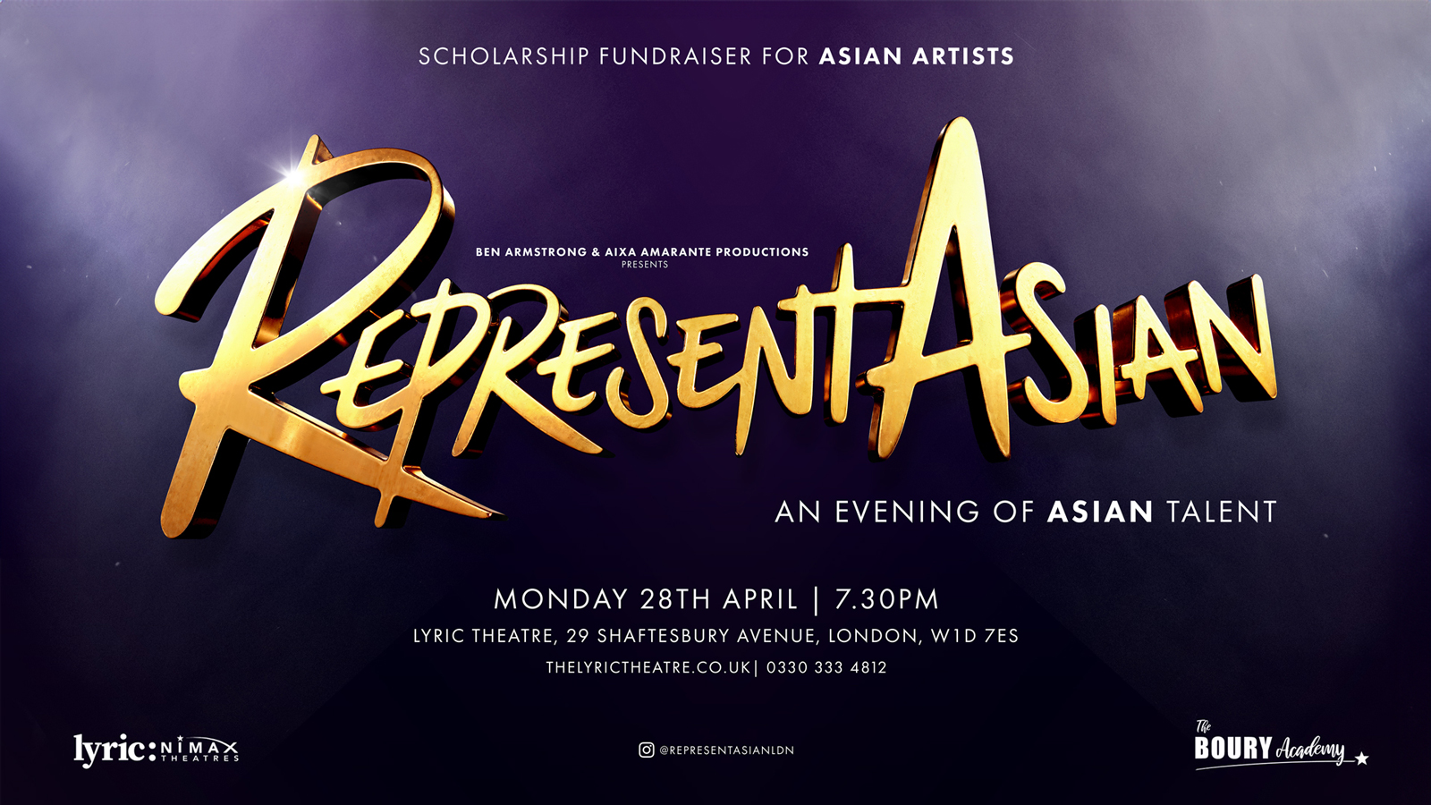This concert is not only going to provide a brilliant night of entertainment for audiences, but it is also a fundraising event! RepresentAsian in partnership with The Boury Academy are using this concert to fundraise to create a scholarship for young, Asian individuals to train in the arts and widen the talent pool. Asian talent is very much here, and this scholarship will help get Asian people one step closer to getting on the stage.